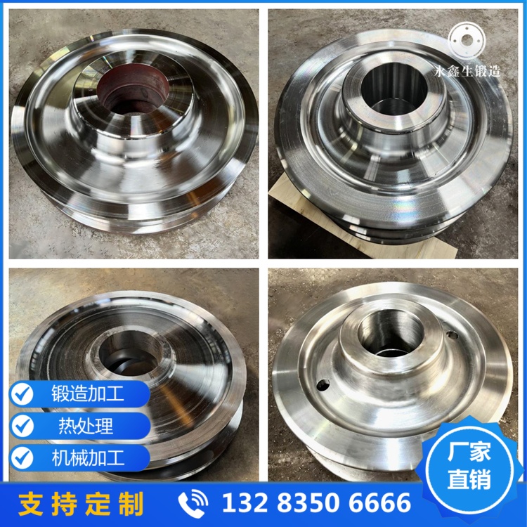 42CrMo合金鋼是綜合性能最優(yōu)的高端材質(zhì),鉻、鉬元素含量高于35CrMo,力學(xué)性能更優(yōu)異。該材質(zhì)抗拉強度≥1080MPa,屈服強度≥930MPa,抗沖擊、抗疲勞、耐磨性均處于領(lǐng)先水平,經(jīng)淬火+回火處理后,踏面硬度可達HRC48-55,淬硬層深度≥15mm,能適應(yīng)超重載、高頻連續(xù)運行、極端沖擊的工況,部分場景要求其踏面和輪緣內(nèi)側(cè)面硬度達到320HBW~380HBW。適配場景包括:集裝箱吊裝起重機、超重型礦山起重機、高溫冶金起重機等,這類場景載荷大、運行頻率高、工況惡劣,對行車輪鍛件的綜合性能要求極高,選用42CrMo材質(zhì)可確保行車輪穩(wěn)定運行,大幅減少停機損失。其短板是價格最高,是65Mn材質(zhì)的1.5倍左右,適合對性能要求極高、停機損失巨大的場景,如寶武各大鋼廠使用的高端起重機,多選用該材質(zhì)。